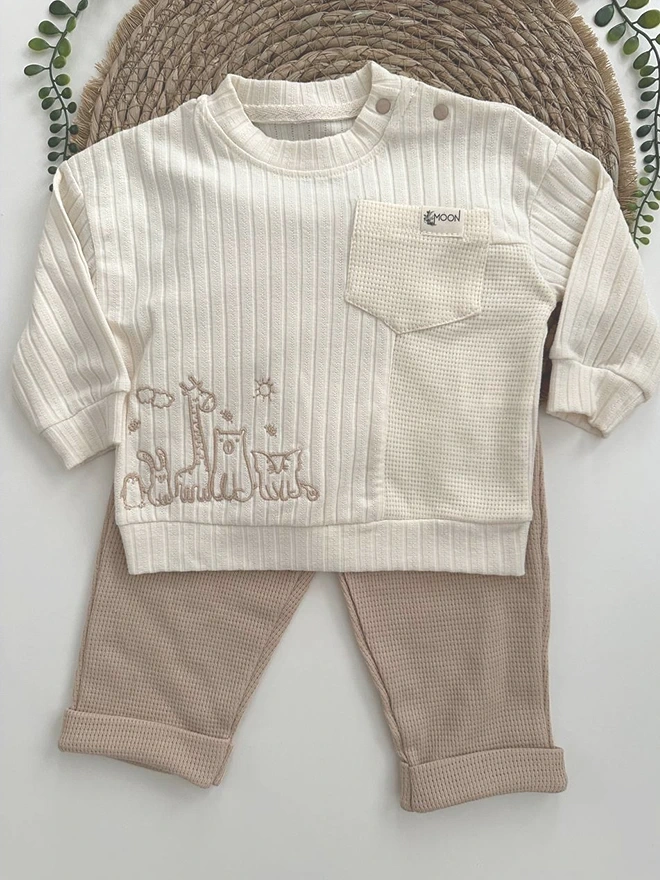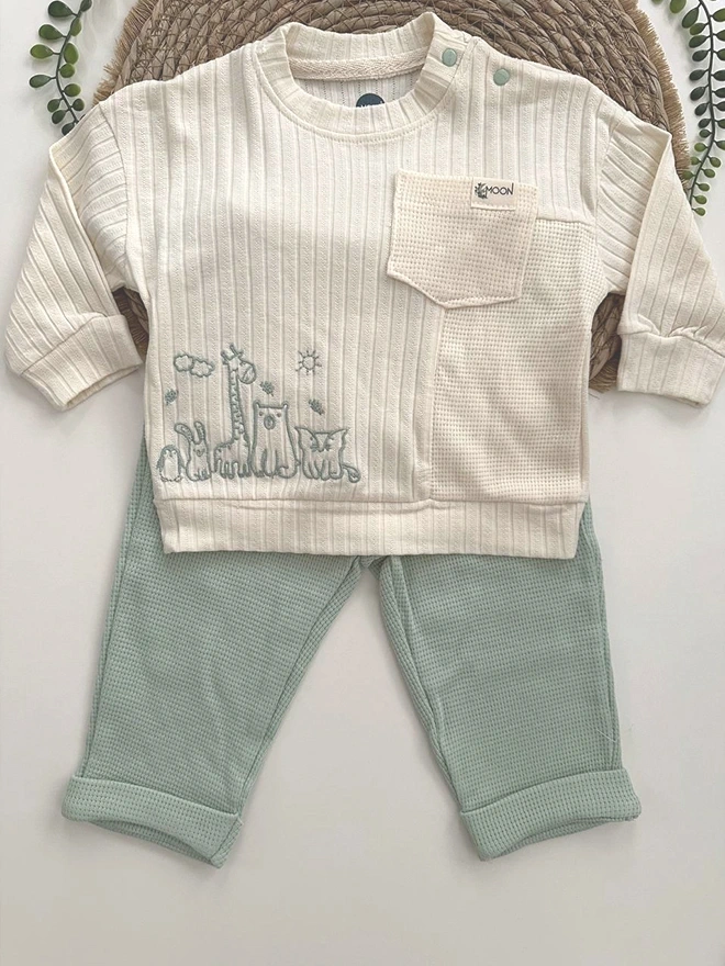 Bebeğinizin hassas cildi için özel olarak tasarlanmış bu 2’li bebek takımı, %100 pamuk kumaştan üretilmiştir. Yumuşak dokusu ve nefes alabilen yapısıyla minik bedenlere gün boyu konfor sağlar.